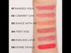 Lanolin Oil, Ricinus Communis Seed Oil, Hydrogenated Castor Oil Dimer Dilinoleate, Bis-Diglyceryl Polyacyladipate-2, Oleyl Erucate, Synthetic Wax, Dicaprylyl Carbonate, Euphorbia Cerifera Cera, Cera Microcristallina, Isononyl Isononanoate, Sesamum Indicum Seed Oil, Simmondsia Chinensis Seed Oil, Hydrogenated Polycyclopentadiene, Caprylic/Capric Triglyceride, Mica, Lauroyl Lysine,Tocopheryl Acetate, Stearalkonium Hectorite, Propylene Carbonate, Silica Dimethyl Silylate, Ascorbic Acid, Ascorbyl Palmitate, Citric Acid, PEG-8, Tocopherol, Glyceryl Caprylate, Pentaerythrityl Tetra-di-t-butyl Hydroxyhydrocinnamate, Parfum (Fragrance). +/- CI 77891, CI 19140, CI 45380, CI 45410, CI 15850, CI 77007, CI 77510, CI 77491, CI 77492, CI 77499